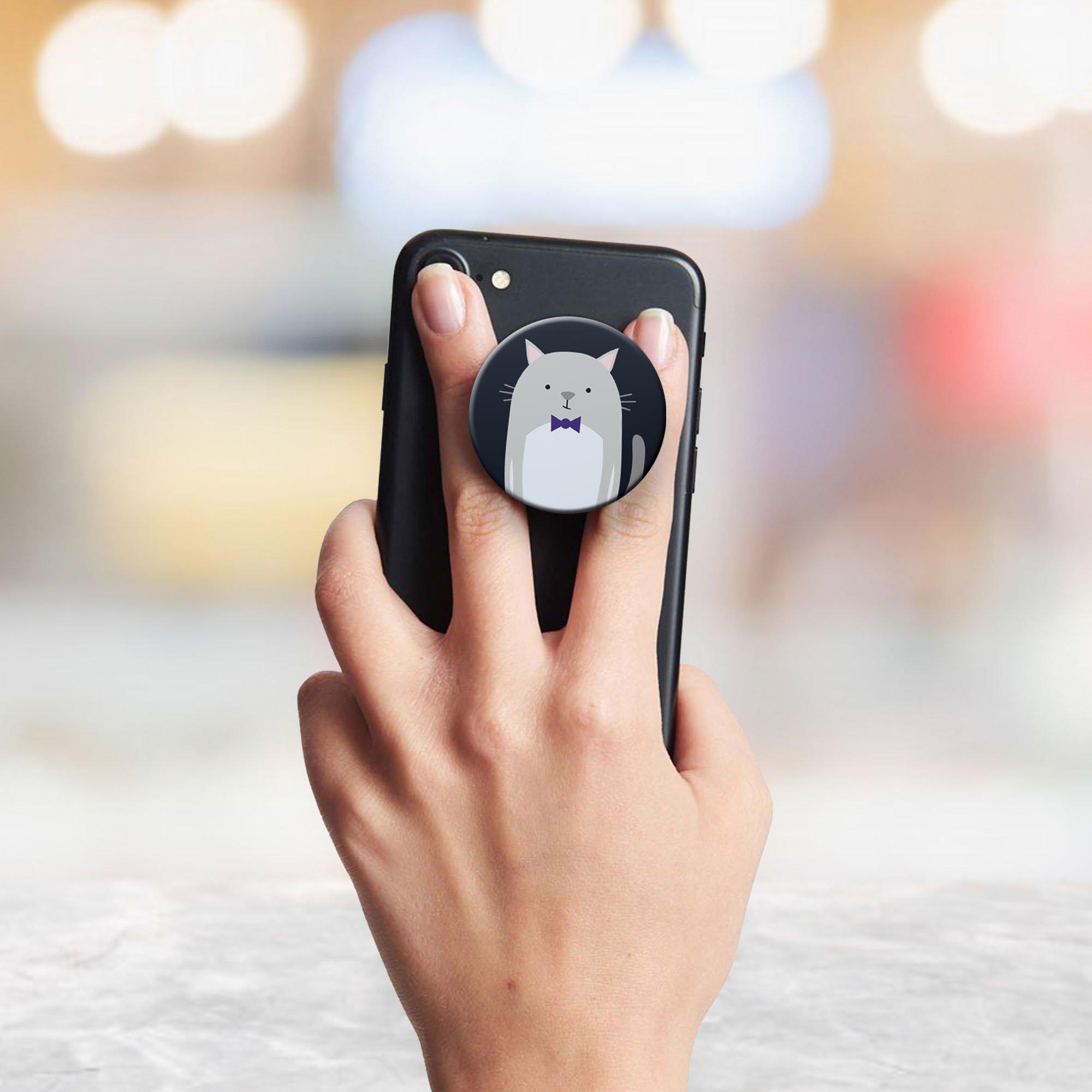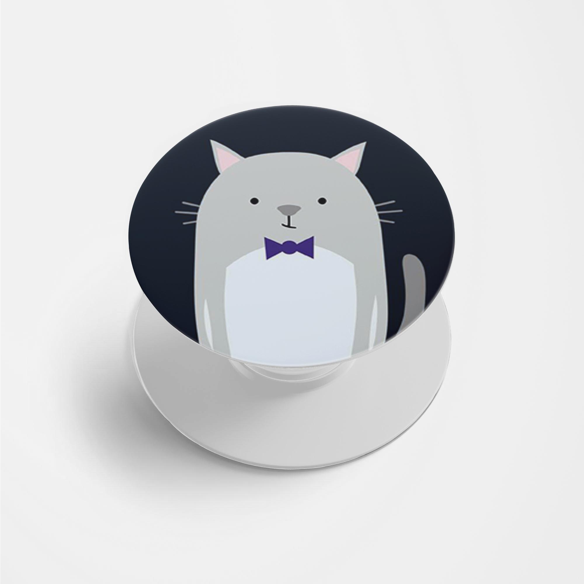 Cat With A Bow Printed Phone Grip Holder & Stand