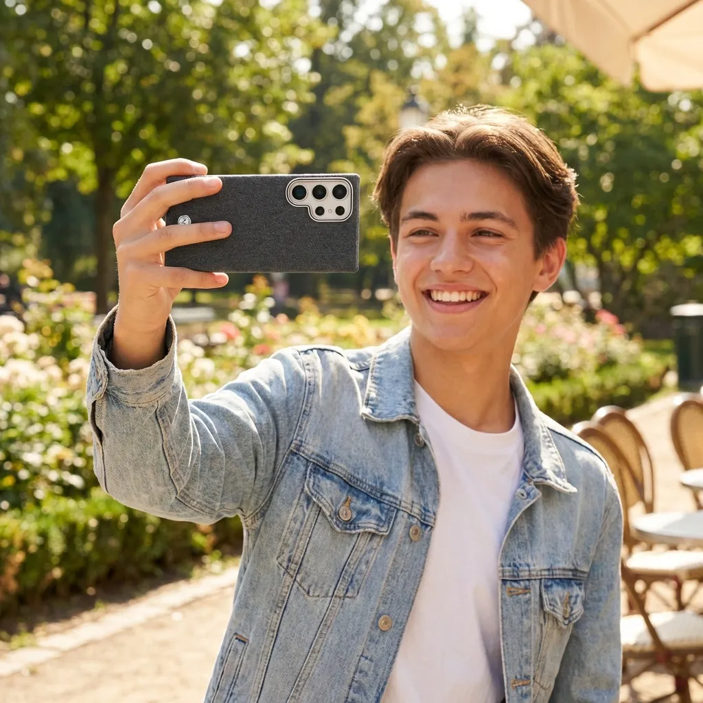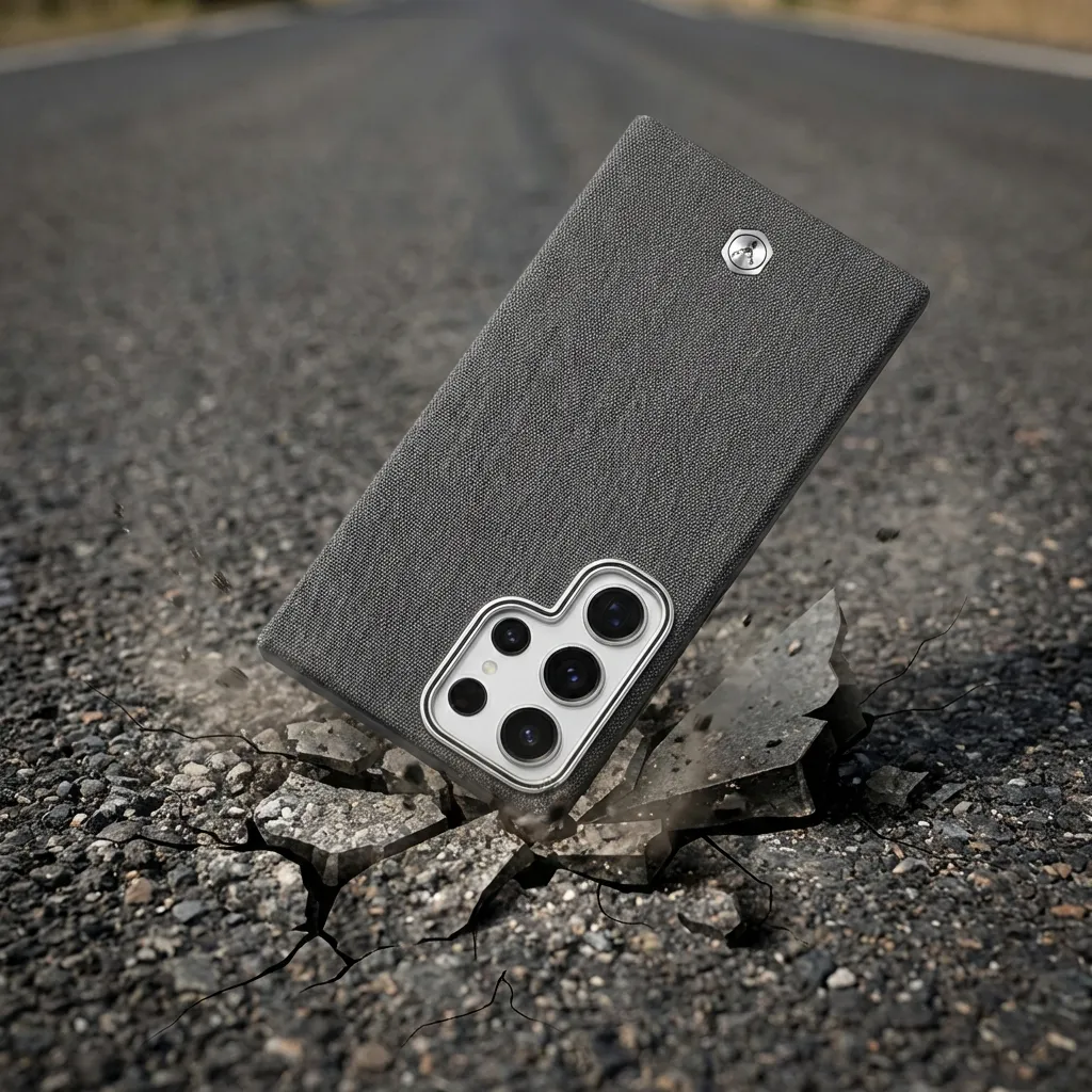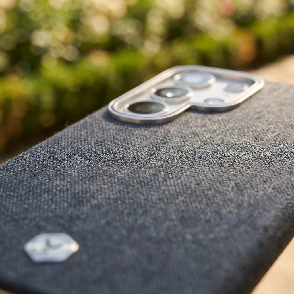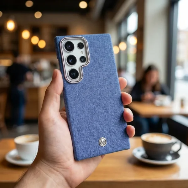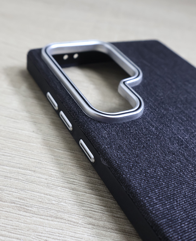 Wrap your phone in a denim-inspired fabric case that looks as good as it feels. The textured woven back offers a soft, cloth-like touch with extra grip, so your device feels secure in your hand and won’t easily slip from smooth surfaces. A slim metal frame around the camera module adds a refined accent while helping guard the lens area from scratches when you place your phone down.