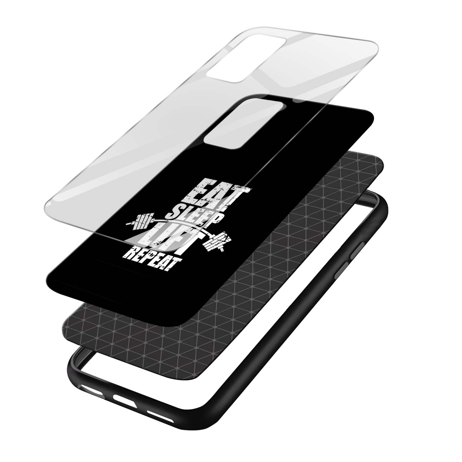 Eat Sleep Lift Repeat Printed Glass Back Phone Case