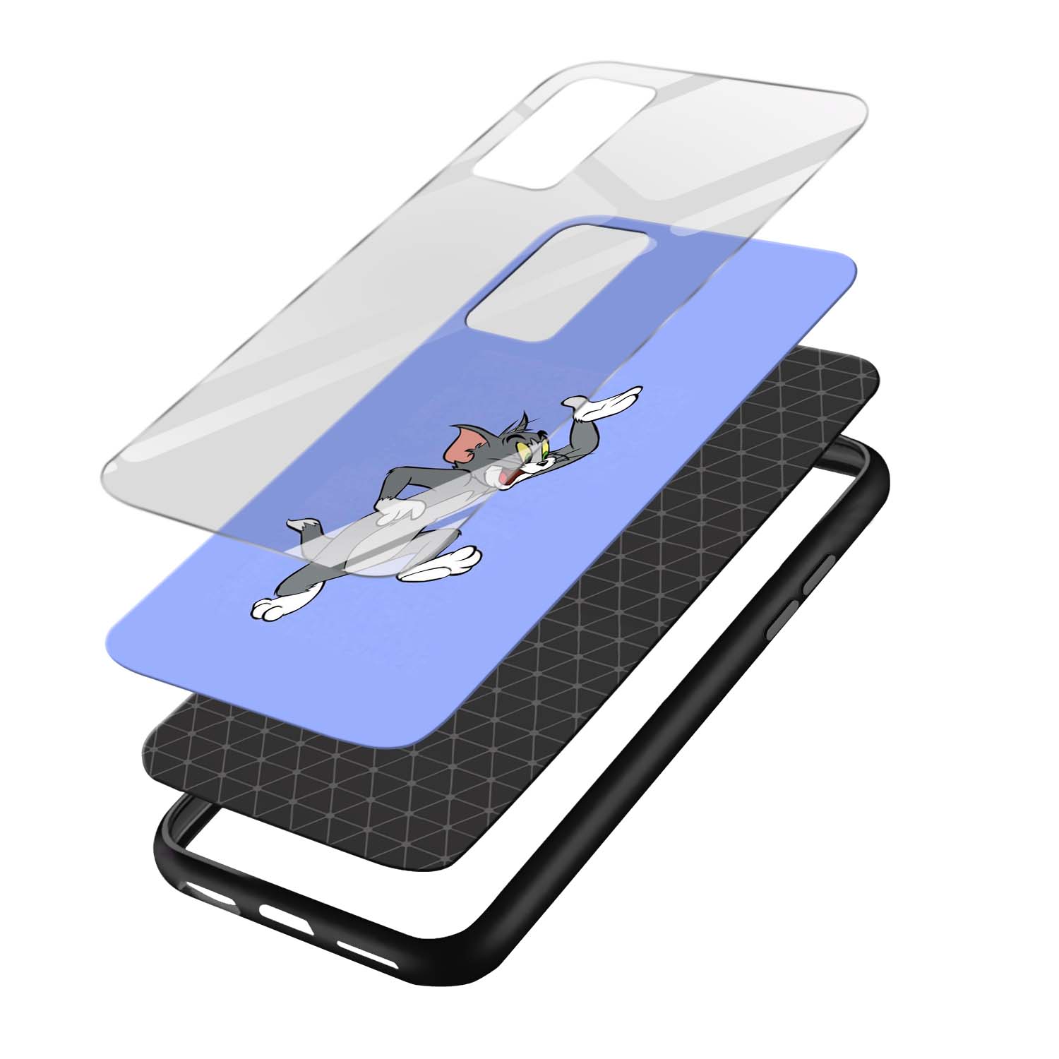 Tom Cartoon Printed Glass Back Phone Case