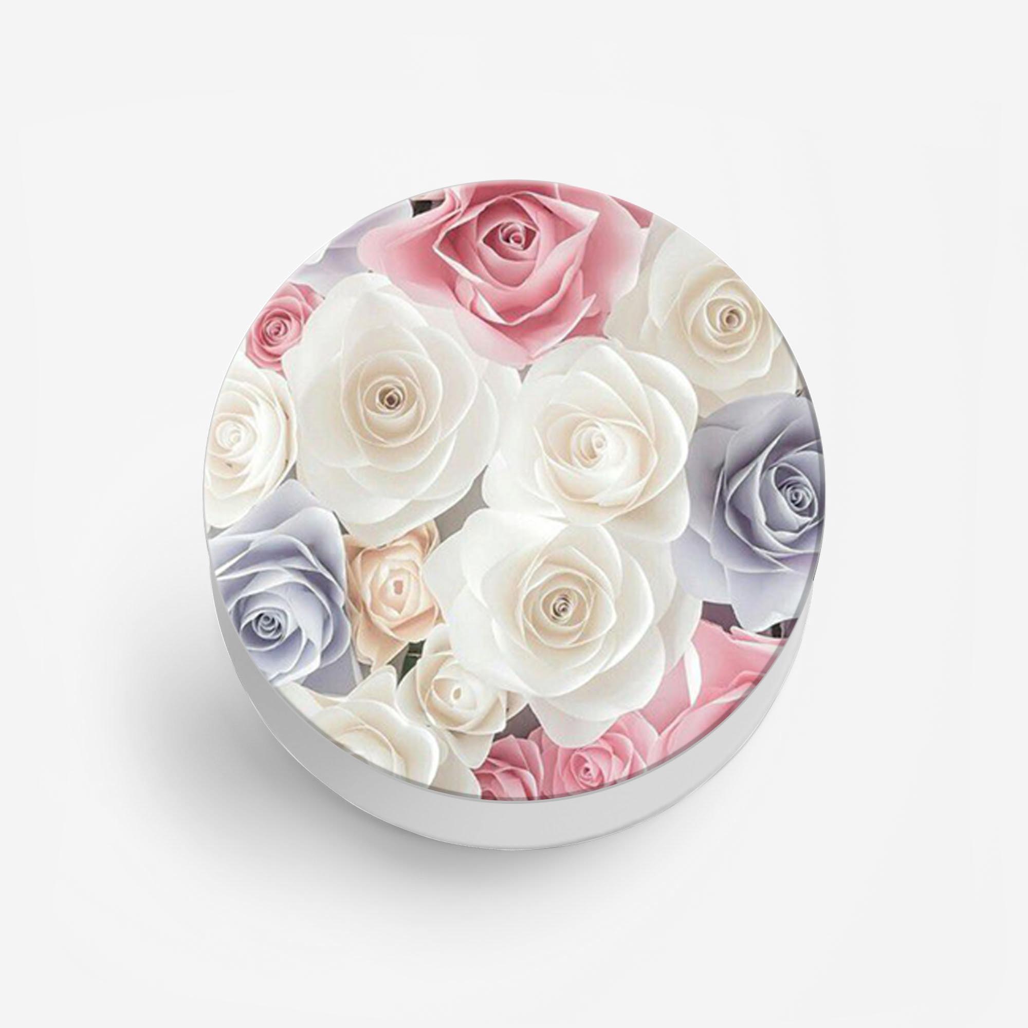 White Pink Roses Printed Phone Grip Holder & Stand